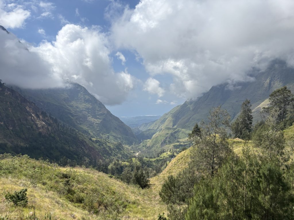 Ursprünglich sollte unsere Tour zuerst mit dem Auto von Senaru nach Sembalun gehen. Dort gehts dann zu Fuß von Sembalun zum Sembalun Crater Rim, am nächsten Tag dann zum Summit und anschließend zum Senaru Crater Rim und am letzten Tag dann nach Senaru gehen. Unser Guide holte uns mit nem Pickup ab, wir sammelten noch unsere Mitstreiter aus anderen Hotels ab und ließen den Großteil unseres Gepäcks in seinem Hotel. Wir waren eine Gruppe aus 8 Wanderern und 2 Guides. Ein Pärchen aus der Nähe aus Stuttgart und noch 3 aus Dänemark und Norwegen. Ich nahm die Drohne, 1 Paar Ersatzkleidung und noch was wärmeres für die Abende mit. Zelte, Essen und das Wasser müssen wir nicht selber tragen, für unsere Gruppe gibt es on top noch 2 „Porter“.