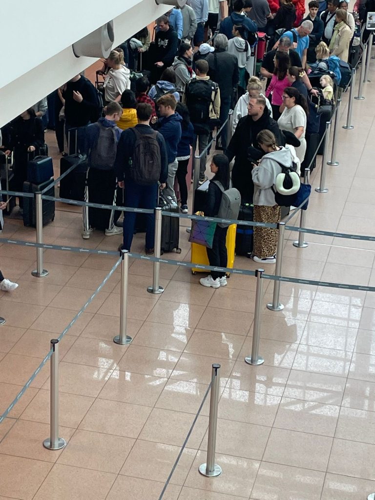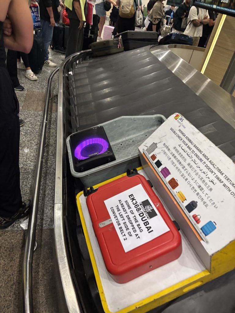 Auch für die Menge an Gepäck war der Flughafen nicht wirklich bereit. Nachdem wir schon recht lange auf die Koffer gewartet hatten fiel uns ein Behälter auf wo drin stand dass die Koffer auch neben dem Gepäck Band standen. Es stellte sich heraus dass das Gepäckband wohl nicht für alle Koffer ausreichen sollte, und so gab es Mitarbeiter die den Koffer nach wenigen Runden (oder vmtl. manchmal auch direkt) wieder vom Band nahmen und neben dem Gepäckband abstellten.