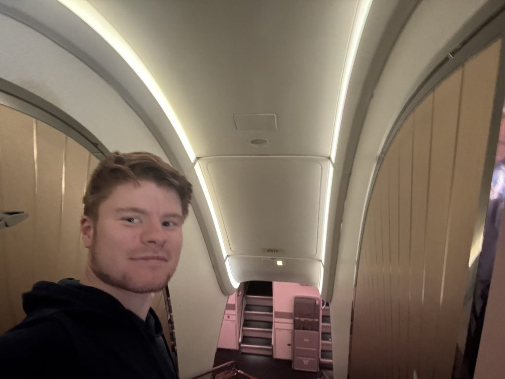 Zunächst ging es 6 Stunden nach Dubai. Für unseren Tauchkurs haben wir nen Online Theorie Kurs bekommen. Joel war fleißig und hat die Zeit vor dem Urlaub genutzt, Thomas und ich dachten man könnte den Kurs ja auch noch entspannt aufm Flug machen. Wie sich herausstellte war das ganze dann doch etwas umfangreicher als zunächst gedacht. Statt der 10-15 Kapitel gab es 10-15 Kapitel mit jeweils 6-15 Unterkapiteln. Und so scrollten wir 5 Stunden durch gefühlt ewig lange Textpassagen, lernten viel über Luftdruck, Handzeichen beim Tauchen, das Verhalten von Stickstoff und Sauerstoff in den Tiefen und vielen anderen Dingen die wohl beim Tauchen nützlich sein sollten. Das Essen war gut, der Flug war ruhig und schon waren wir in Dubai. Nach 2 Stunden Aufenthalt in Dubai ging es dann weiter im Airbus A380 nach Denpasar, dem Flughafen auf der Indonesischen Insel Bali. Wir hatten Glück bei der Buchung und hatten den „Touri-A380“ erwischt. Die Besonderheit ist hier dass es im 2. Stockwerk vorne keine First Class sondern Economy Reihen gibt, die wir uns gebucht hatten. Wir durften also zusammen mit den Business Class Passagieren oben einsteigen. Am Fenster hatte man an der Seite noch extra Aufbewahrungsfächer, die Toilette war ziemlich groß (das ist wohl normalerweise die Dusche), ansonsten war es aber so wie man sich eine Economy Class eben vorstellt.