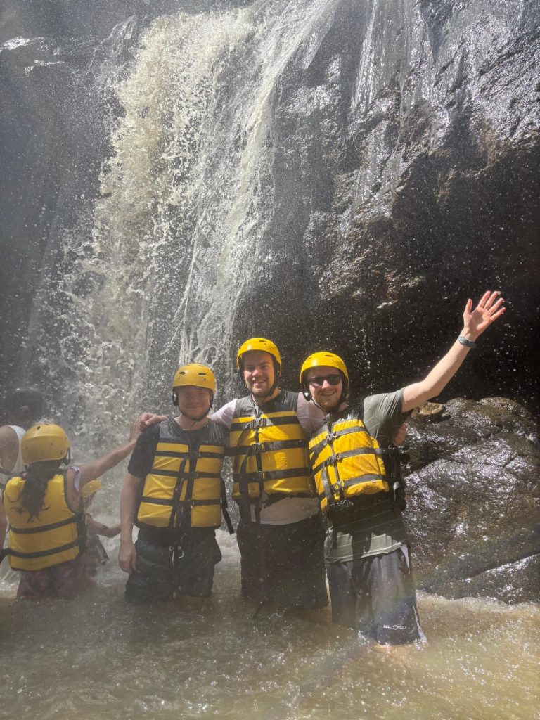 Das Rafting an sich war wild. Wir waren mit 3 Norwegern (1 Mutter mit 2 jugendlichen Kindern) und einem Guide aufm Boot. Die Kinder haben nur so halbherzig mitgemacht und so hingen wir bereits an der ersten Stromschnelle auf nem fetten Stein fest. Als wir in die panischen Augen unseres Tourguides guckten stellten wir schnell fest dass das ne wilde Angelegenheit werden könnte. Und so kam‘s dann auch. Wir sind mehr oder weniger kontrolliert die Stromschnellen runtergerutscht, haben uns festgefahren, sind anschließend fast ausm Boot gefallen und waren froh dass wir alle heile unten angekommen sind :D. Gab aber auch viele sehr spaßige Passagen und die Erfahrung war an sich ganz cool 🙂