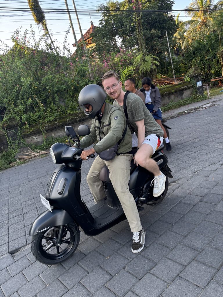 Los ging unser Tag für Thomas & mich um 7:30 mit einer Morning Yoga Class. Ubud ist wohl das „Yoga Paradise“ und das wollten wir uns natürlich nicht entgehen lassen. 1.5h Yoga zum Sonnenaufgang in einem indonesischen Bungalow waren wirklich sehr entspannt. Die Class war super für Beginner geeignet und der Start in den Tag war perfekt. Hin und zurück ging es wie gehabt als Passagier auf dem Grab Roller von nem Balinesen.